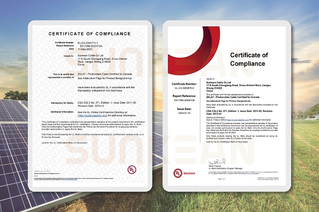 캐나다 전기 제품 인증 시장은 CUL과 CSA로 구분되며, 두 표준의 구현은 CSA C22.2 NO.271:11 입니다 . 이는 AC 및 AC에 적용 가능한 정격 전압 600, 1000 또는 2000V를 제공합니다. 태양광 단일 도체 및 이중 도체 열경화성 절연 케이블의 DC 시스템 요구 사항은 표준의 특정 세부 사항 구현 및 UL 인증과 큰 차이가 없습니다. 유일한 차이점은 인증서 발급 기관이 다르다는 점이며, CUL은 미국 UL에서 발급하고 CSA는 캐나다 인증 기관에서 발급한다는 점입니다.