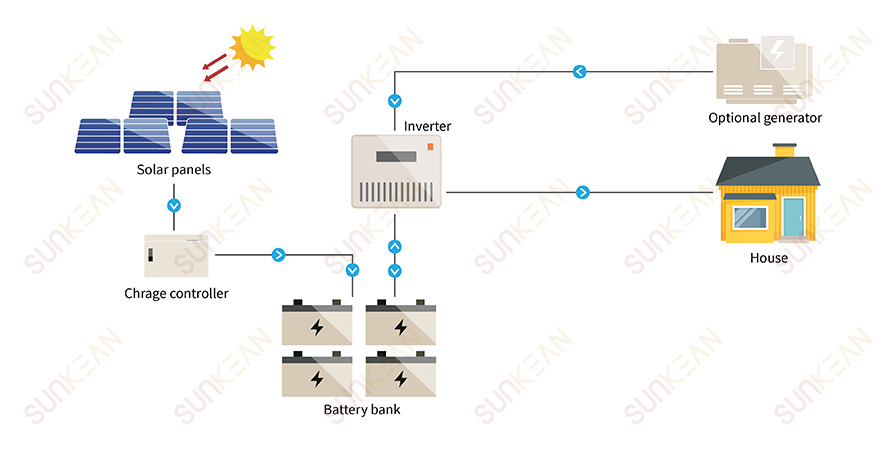 일반적인 하이브리드 태양광 시스템은 다음과 같은 추가 구성 요소를 기반으로 합니다.