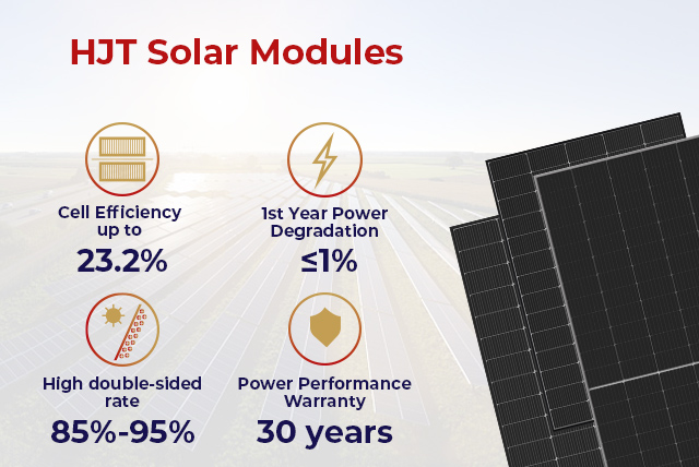 고효율: HJT 태양광 패널은 단일종 모듈의 경우 26.07%, 양면 모듈의 경우 30% 이상의 변환 효율을 가지며 업계에서 가장 효율적인 태양광 기술 중 하나입니다.