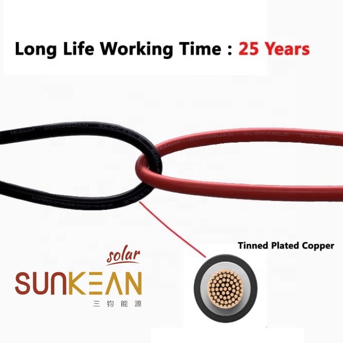 태양광 케이블 은 지속적으로 햇빛에 노출되며 태양광 시스템은 종종 고온 및 UV 복사와 같은 열악한 환경 조건에서 작동합니다. 화창한 날에는 태양계의 현장 온도가 90-100℃에 이를 수 있습니다. SUNKEAN 태양광 케이블 은 태양광 시스템 작업을 전문으로 하는 TUV/CE/UL의 인증을 받았습니다. 광전지 케이블 대신 일반 PVC 케이블을 선택하면 분명히 태양계의 서비스 수명에 큰 영향을 미칩니다.