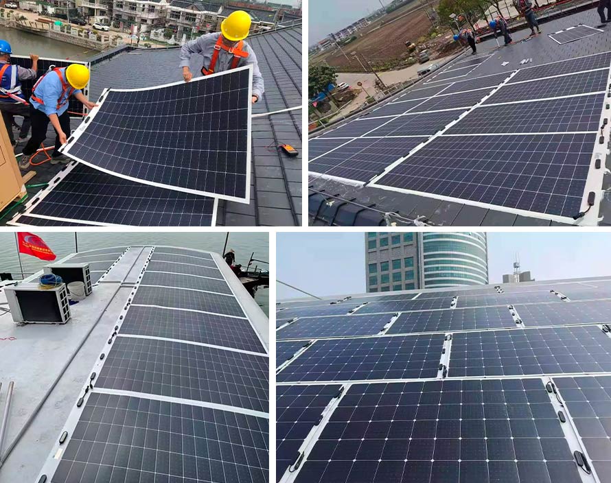 375W의 유연한 태양광 패널은 가볍고 얇은 디자인을 채택했습니다. 고급 유기 폴리머 캡슐화 재료를 사용한 초박형 실리콘 웨이퍼는 최소 굽힘 반경이 0.30mm에 달하며 모든 종류의 곡면에 완벽하게 맞습니다.