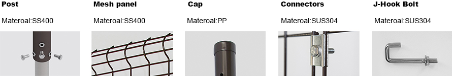 | 메쉬 패널 | 폭 | 표면 처리 | 와이어 직경 | 메쉬 크기 | 굽힘 | 커넥터 | 경사 금속 |