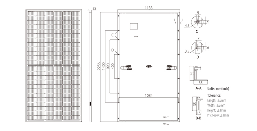 * STC (표준 테스트 조건) : 조도 1000W / m 2, 셀 온도 25 ° C , 스펙트럼 AM1.5