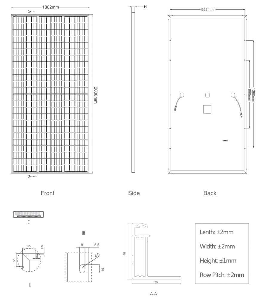 | Pmax 의 온도 계수 | -0.35 % / ° C | |||||||||