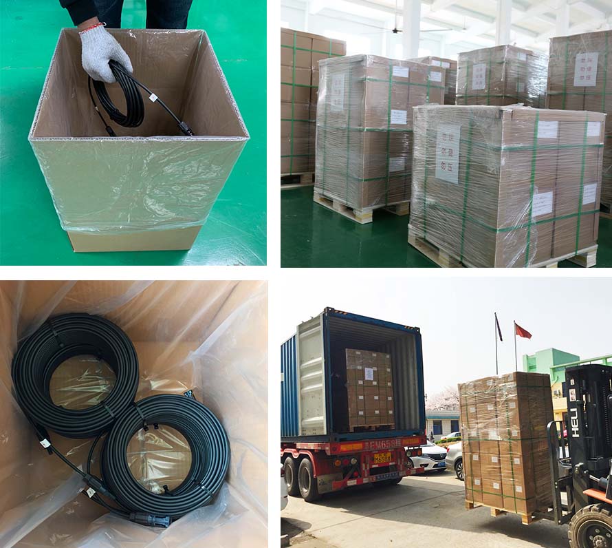 우리는 풍부한 제조 경험을 가지고 있습니다. 전 세계에 태양광 제품을 수출하고 있습니다. 이 듀얼 코어 태양열 접합 케이블은 TÜV 2pfg PV1-F 태양광 케이블을 사용합니다, 듀얼 코어 케이블은 관리하기 더 편리합니다.