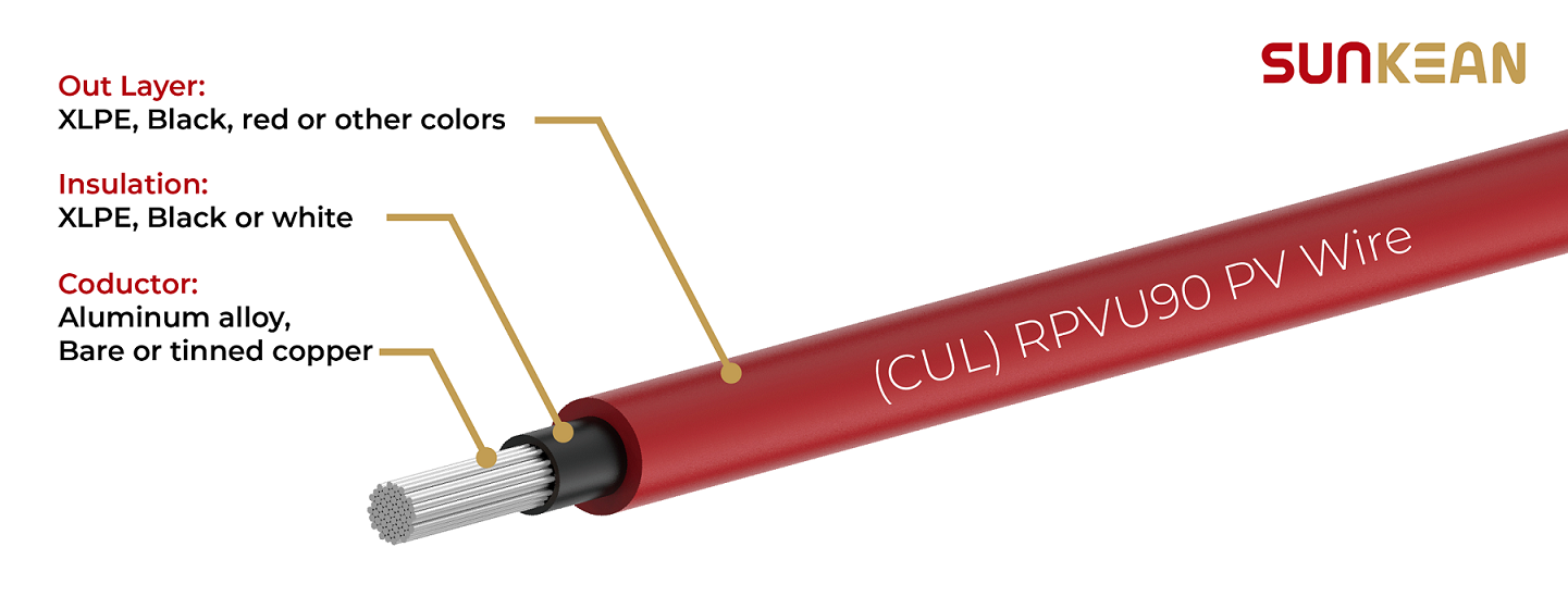 RPVU90 2kV PV 와이어 2/0AWG( 알루미늄 합금 , 이중층 포함)